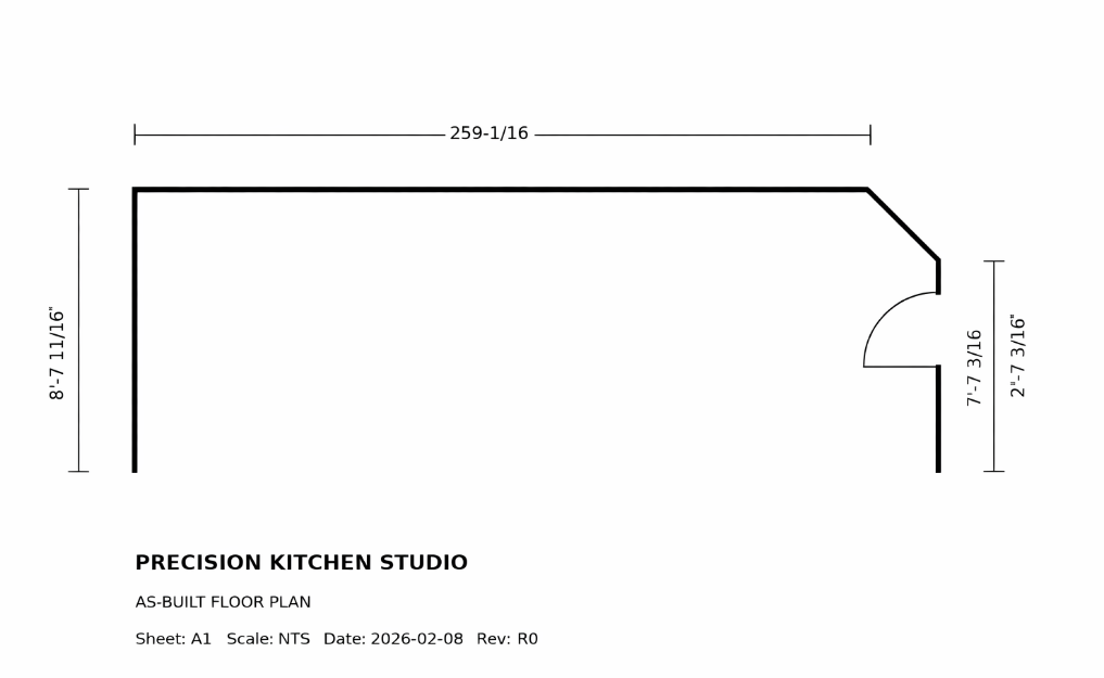 Precision Kitchen Studio takes a kitchen from existing conditions and early intent to an order-ready plan set a cabinet shop and builder can execute with fewer surprises. We specialize in feasibility, documentation, and decision support—so cabinet scope stays aligned to budget, pricing comes back clean, and jobsite questions drop.